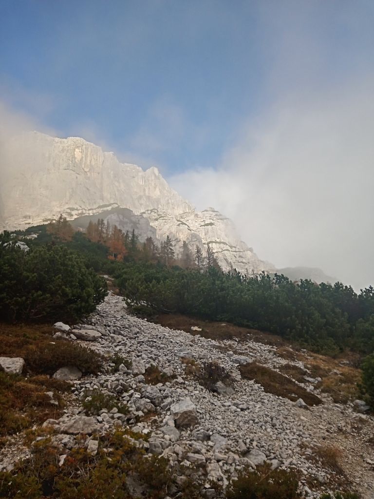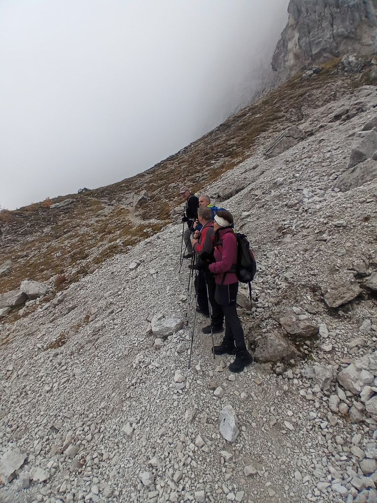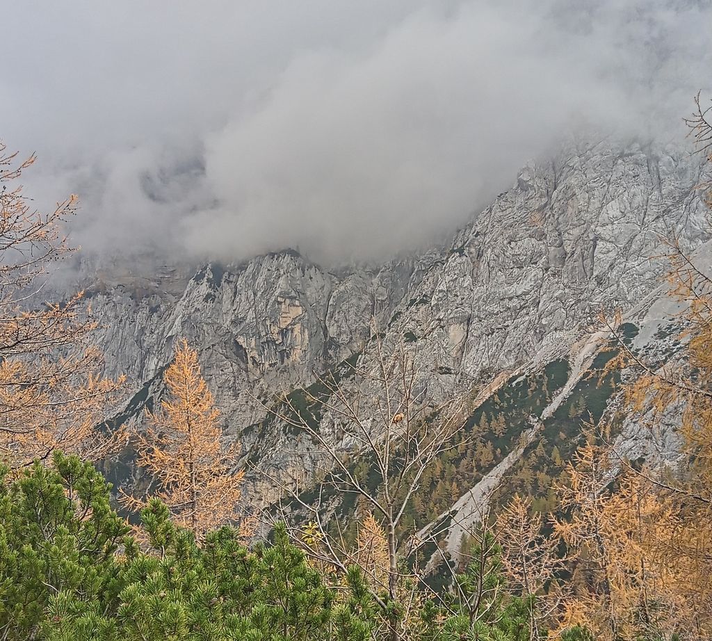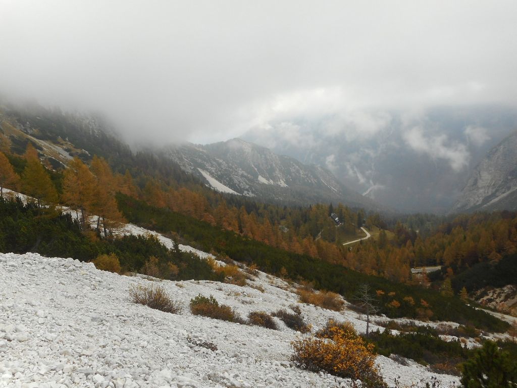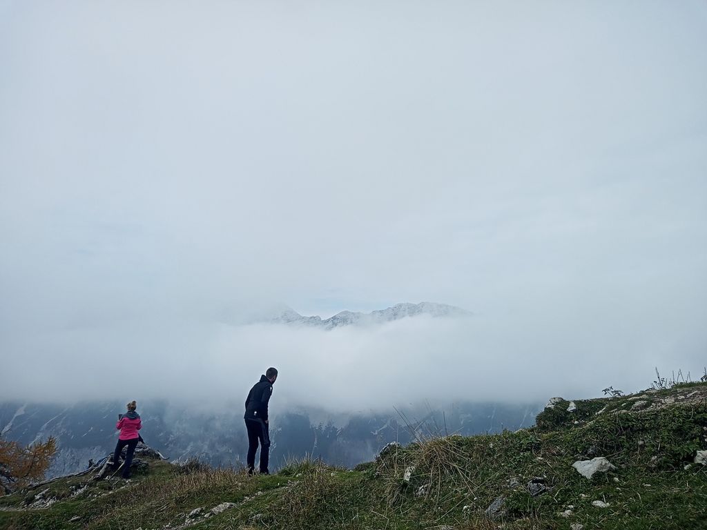 Res so bili lepi na ogled, a je žal manjkala sončna svetloba, ki bi krasoto nadgradila. Sonce se je skrivalo višje nad oblaki, le na trenutke je prebodlo plast megla. Pa to nas ni odvrnilo, da se nebi odpravili proti vrhu. Počasi smo se vzpenjali po stezi iz Vršiča. Na Vratcih smo krenili desno, Mojstrovka je bila za danes za nas prezahtevna. Nekajkrat se pot strmeje vzpne, na koncu pa pripelje na travnato planoto. Nekoč je bilo na njej še jezerce, v katerem se je zrcalil Jalovec. Danes pa le nekakšen ostanek suhe mlakuže. Čisto na vrhu je skrinjica, prostor za slikanje in ob jasnem vremenu za razgledovanje po vrhovih nad dolino Tamar, planiške skakalnice, desno Ciprnik, Vitranc. Vračali smo se po melišču pod Mojstrovko. Skočili do Poštarskega doma, se pod Prisojnikom zazrli v obraz Ajdovske deklice in v kombi sedli pri Erjavčevi koči.