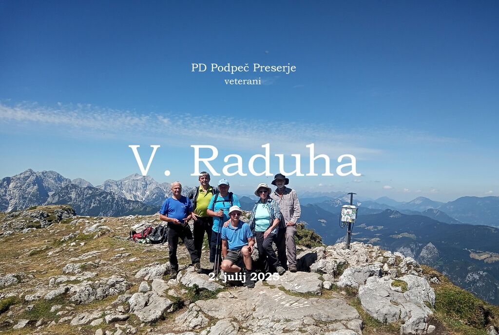 Veterani PD Podpeč Preserje se običajno pred poletnimi počitnicami podamo na dvatisočak. Za letošnji cilj, smo si izbrali Veliko Raduho, 2062 m, razglednik nad Robanovim kotom. Nanjo smo se podali 2.7.2025