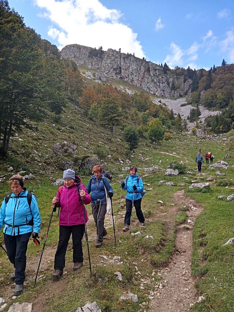 Od Soriške planine se peljemo še kar globoko v gozd do Mišjega grunda. Kar strmo se je začelo. Že takoj so nas pozdravile lepe rdeče mušnice in kmalu zatem jurček. Usta v nasmeh, hoja je postala lažja. Hoja v meglici z rahlim rosenjem in vetrom. Višje kot smo, več je travnatega terena. Na začetku planine Zgornji Jirn pa nas ob poti pozdravijo »jurčki«. Za vsakega od nas jih je bilo dovolj, pa verjetno smo kakšnega še spregledali. Nikakor pa ne orjaka. Počasi pridemo na greben, počasi se jasni in razgledi so vedno lepši. Pred nami je Kremant, nato Alemaver, najvišji vrh pogorja, nato spust do jezerčka in do Koče na Ratitovcu. Še prej pa skok na Gladki vrh. Krekova koča slovi po flancatih, je v letu 2025 dobila priznanje PZS za najboljšo kočo v visokogorju. Smo jih poizkusili in tudi druge dobrote. Po počitku, ko smo se premraženi od vetra zadosti pogreli, smo po poti čez Razor odšli do Prtovča, naše končne pohodne točke.