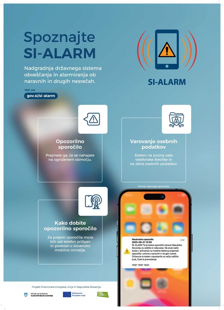 slovenska mobilna omrežja, bodo takrat prejeli testno opozorilo sporočilo. Sporočilo, označeno