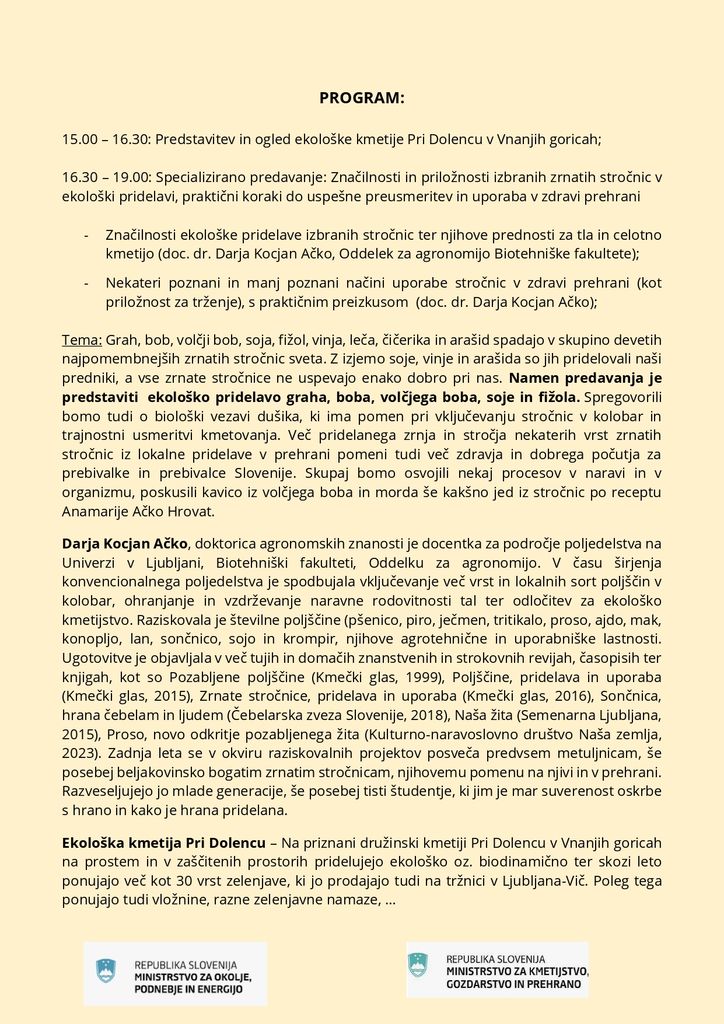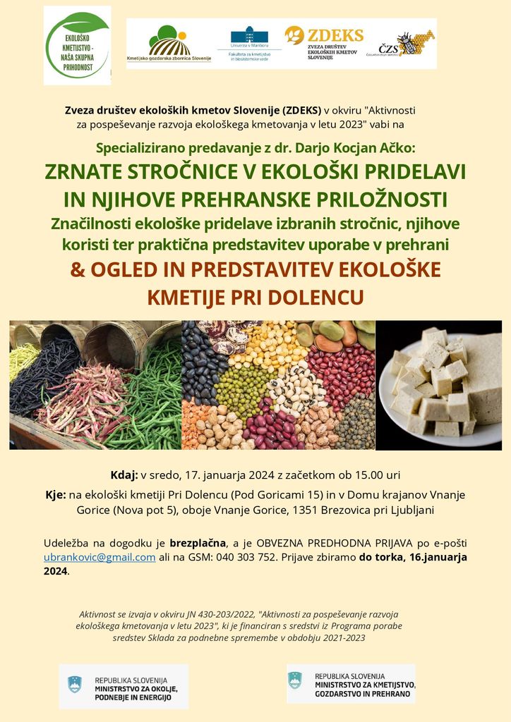 PREDAVANJE: ZRNATE STROČNICE V EKOLOŠKI PRIDELAVI IN NJIHOVE PREHRANSKE PRILOŽNOSTI