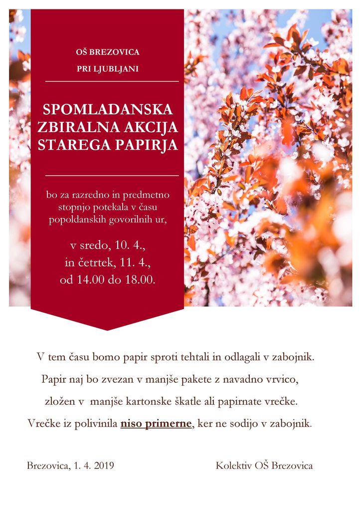 Spomladanska zbiralna akcija starega papirja - OŠ Brezovica - odpade