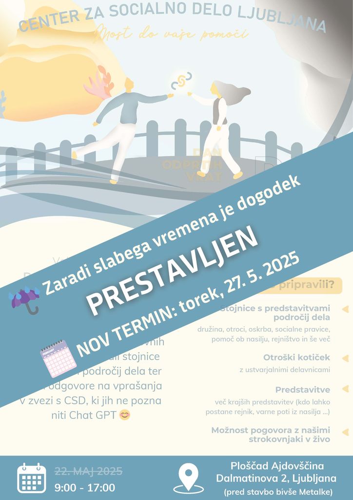 Vabilo na Dan odprtih vrat CSD Ljubljana - prestavitev dogodka na 27.5.2025