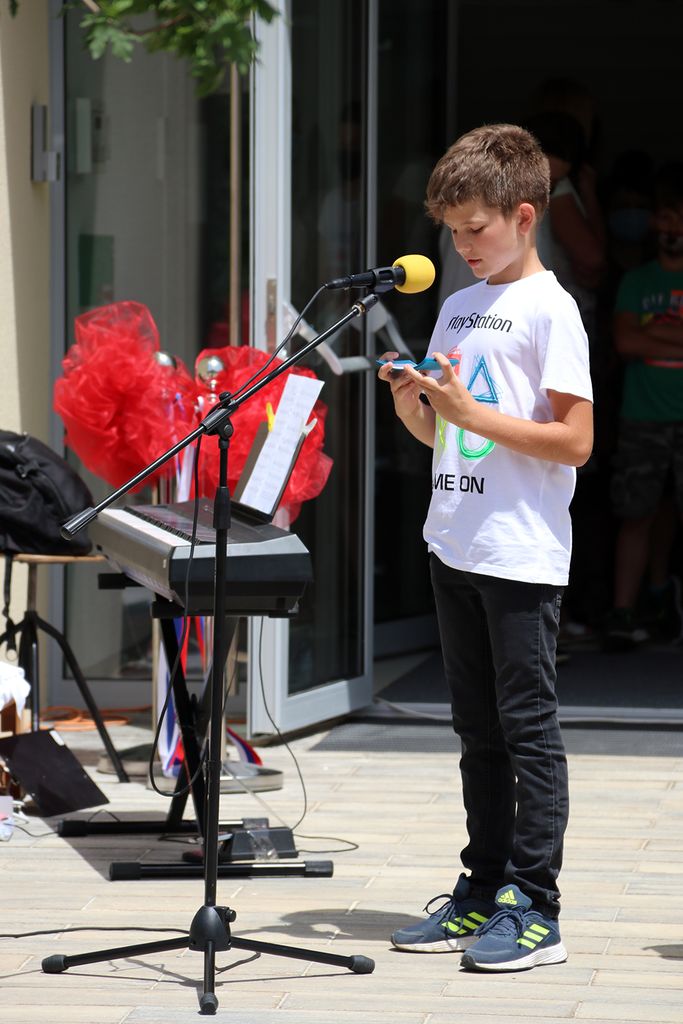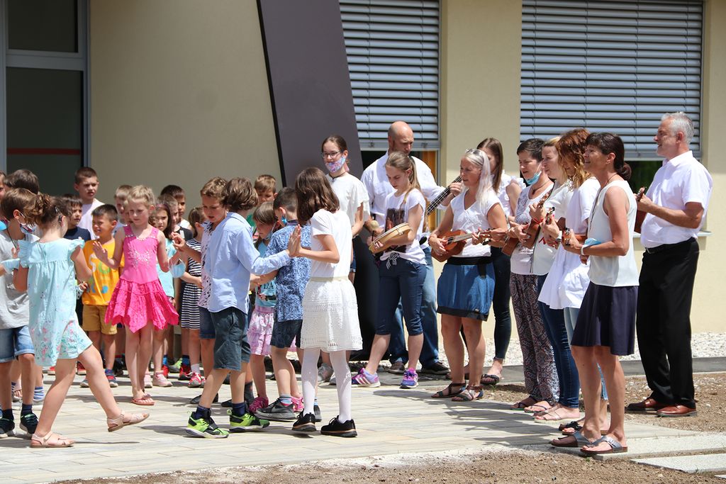 V začetku je otroški pevski zbor odpel slovensko himno, na prečno flavto pa je kitajsko skladbo zaigrala učenka 8. razreda. Ravnatelj Igor Selan se je zahvalil vsem, ki so pripomogli k projektu. »Od leta 1981, ko je bila zgrajena nova šola in se je v letu 2003 že povišala, je letos postala kar naenkrat štirinadstropna stavba,« komentira dozidavo ravnatelj. Šola ima trenutno malo manj kot 400 učencev in s širitvijo bo sama organizacija veliko lažja.