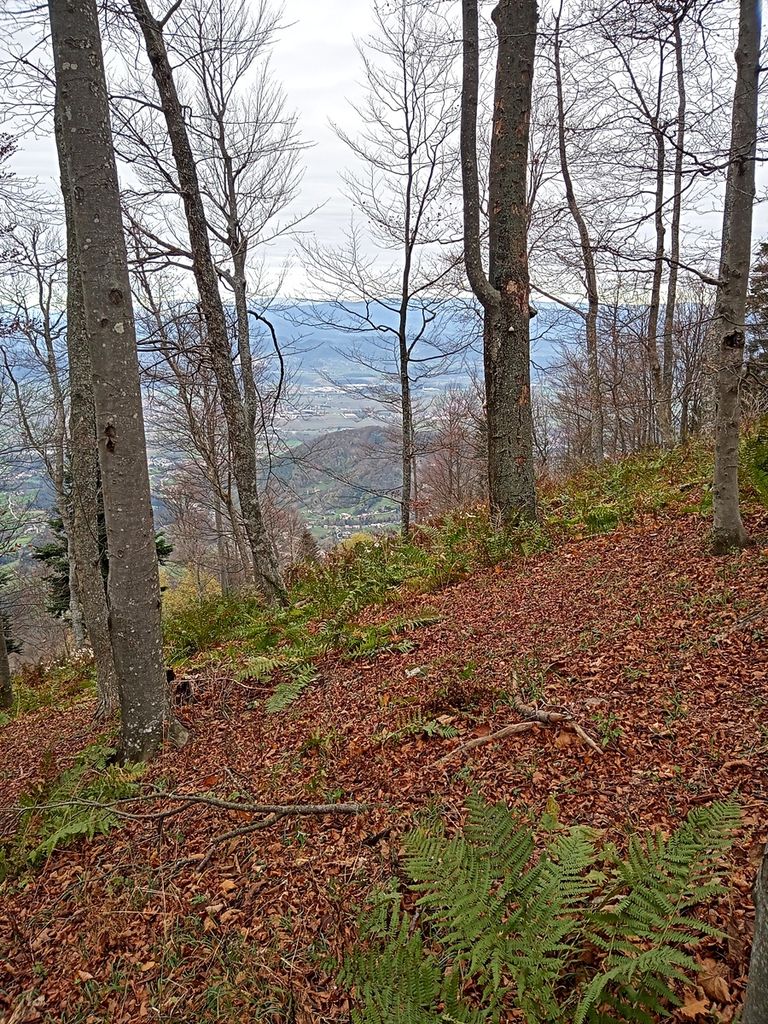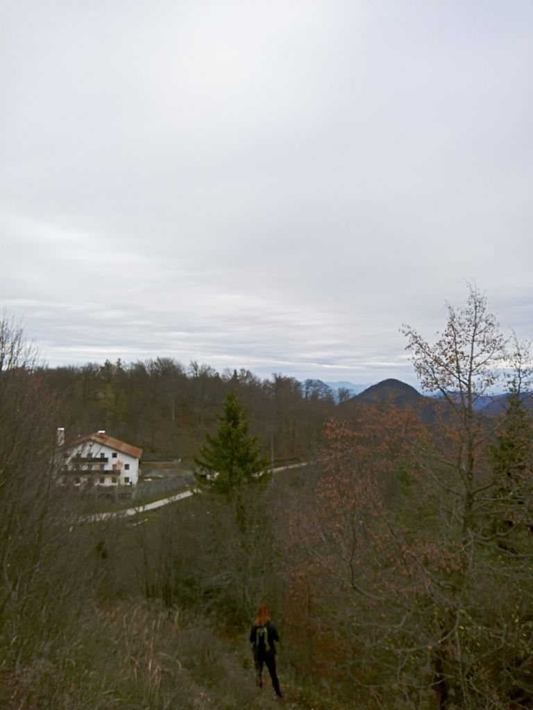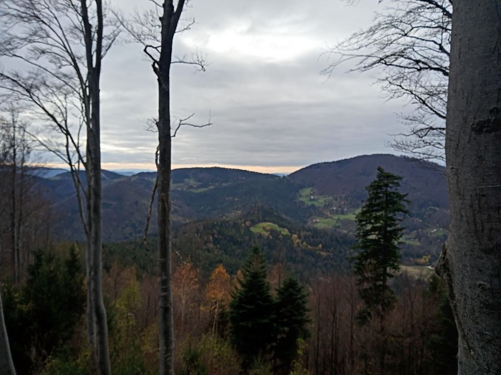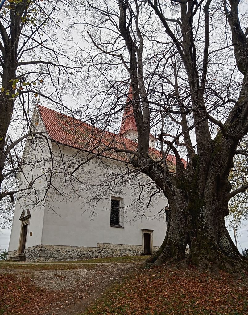 Kombi nas je odložil pred Planinsko rudarskim domom na Kalu nad Hrastnikom, od koder do vrha Mrzlice ni prav daleč, le kratek čas kar huda strmina. Prisopihali smo do vrha, se na ploščadi slikali, razgledali naokoli in se spustili do doma pod njo. Lepo vzdrževana koča, dobro obiskana. Posedli smo se, popili prvi čaj, pojedli prvi sendvič iz nahrbtnika. Pripravljeni za nadaljevanje, do kar precej oddaljenega Gozdnika. Vso višino, ki smo jo pridobili do Mrzlice smo morali izgubiti, pa še dodatnih dvesto metrov. Pot na tem delu je res zelo strma, v tem letnem času polna listja, tako da previdnost ni bila odveč. Že sam ime vrha pove, da se bomo gibali predvsem po gozdu. Tudi ta del je bil precej strm, precej koreninast, je pa na vrhu postavljen bivak. Ker nekih razgledov ni bilo, se nismo prav dolgo na vrhu zadržali. Potrebno se je bilo spustiti še do končnega cilja, do Planinskega doma na Šmohorju. Pot pelje mimo starodavnih mogočnih lip ob cerkvici sv Mohorja. V eno smo se lahko celo zavili. Ko bi imeli več časa, bi lahko prisluhnili zgodbam zgodovine, mi pa smo le naredili sliko.