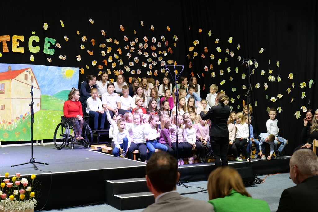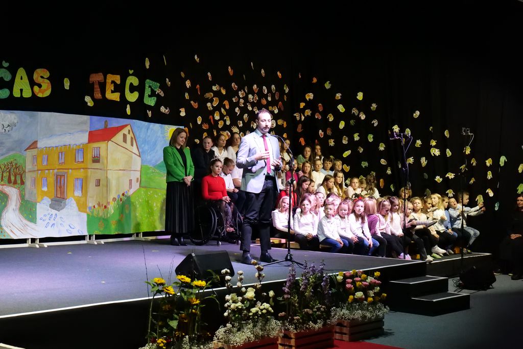 Po glasbeno-plesnem vložku ob šolski himni je zbrane nagovoril tudi Sandi Vrabec, vodja sektorja za osnovno šolstvo. Poudaril je ključno vlogo učiteljev, ki morajo učence učiti kritičnega presojanja informacij v sodobnem svetu.