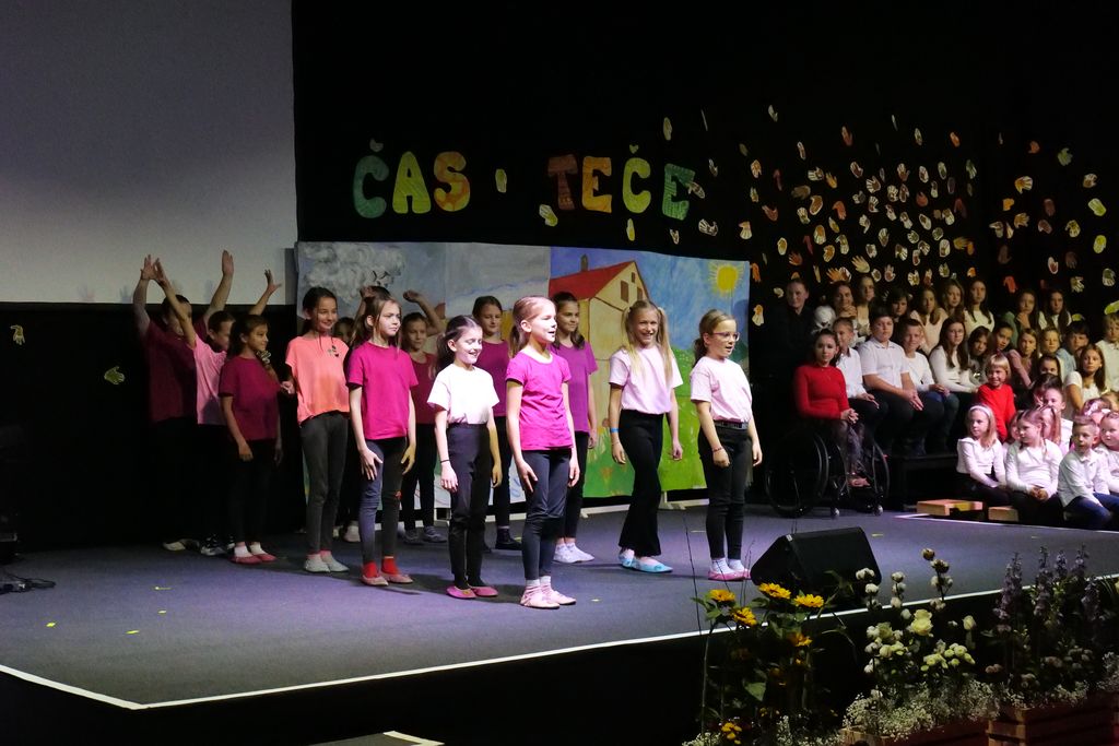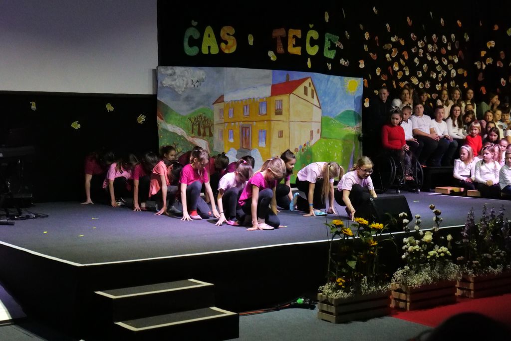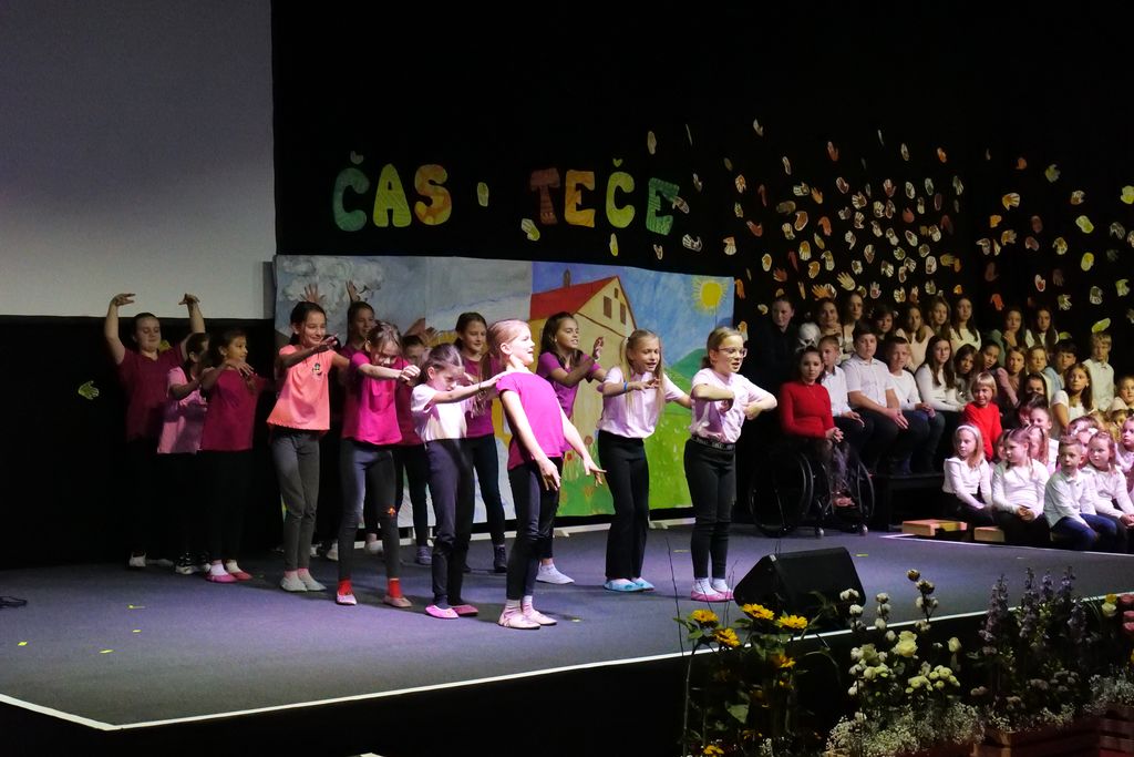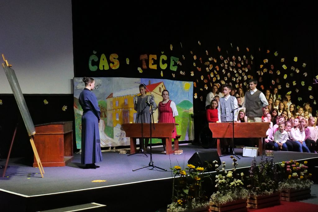 Učenci dramskega krožka so zaigrali prizor, ki je prikazal šolski vsakdan pred dobrimi 100 leti. Pevski zbor je skozi večer zapel več pesmi in z njimi spodbudil razmislek o mladosti in brezskrbnih letih. Na oder je stopil tudi nekdanji učenec Miha Debevec, ki se je s kolegom Klemnom Bojanovičem predstavil kot glasbeni virtuoz. Plesni nastop Brine Rogelj je občinstvo navdušil in pokazal, da je z vztrajnostjo v življenju vse mogoče.