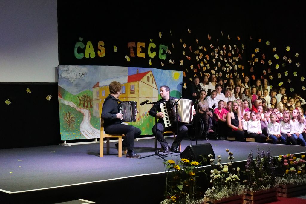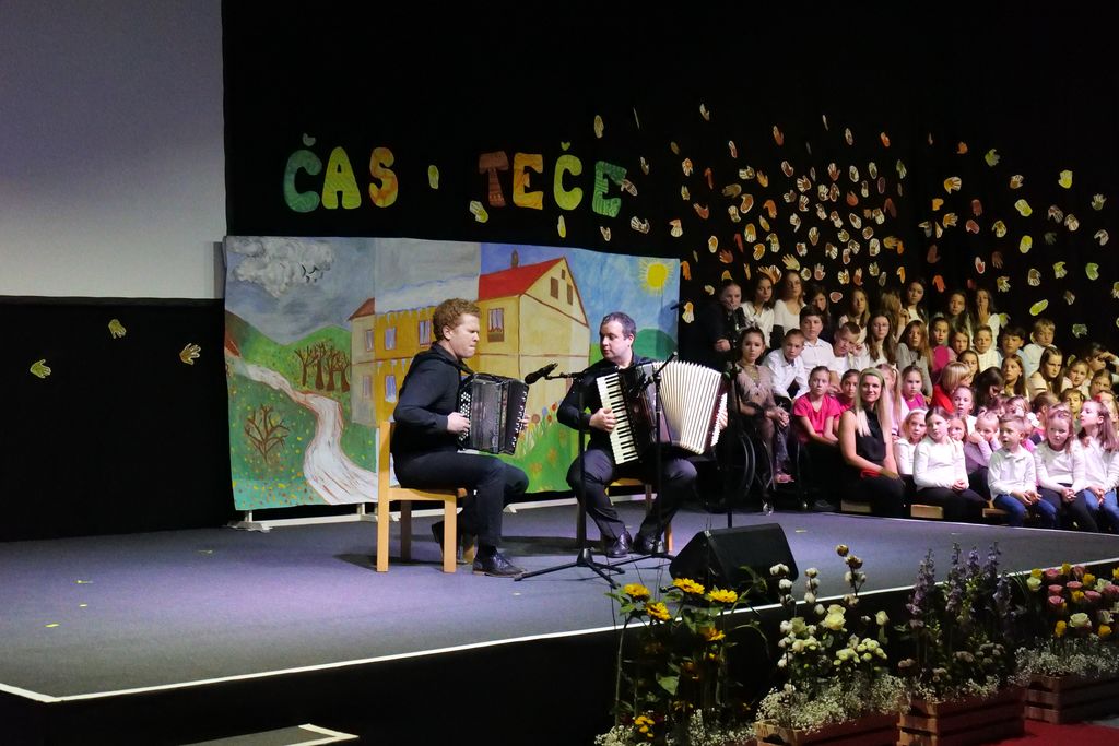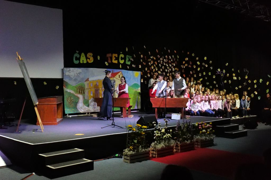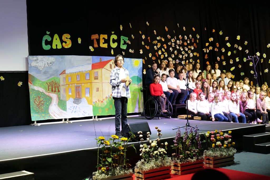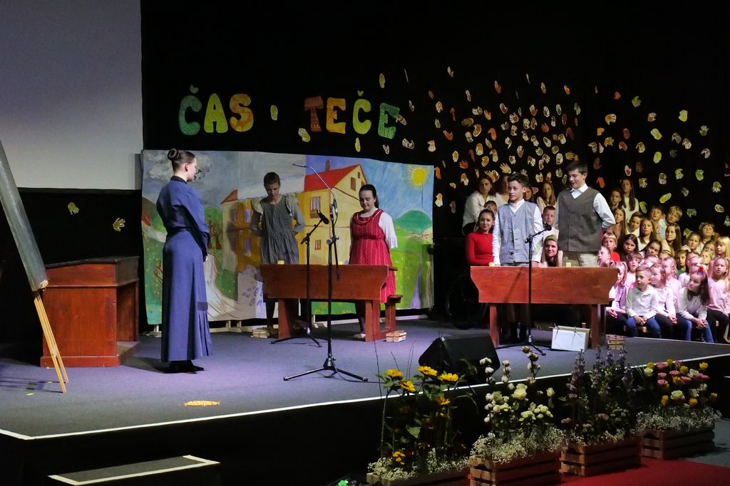 Učenci dramskega krožka so zaigrali prizor, ki je prikazal šolski vsakdan pred dobrimi 100 leti. Pevski zbor je skozi večer zapel več pesmi in z njimi spodbudil razmislek o mladosti in brezskrbnih letih. Na oder je stopil tudi nekdanji učenec Miha Debevec, ki se je s kolegom Klemnom Bojanovičem predstavil kot glasbeni virtuoz. Plesni nastop Brine Rogelj je občinstvo navdušil in pokazal, da je z vztrajnostjo v življenju vse mogoče.