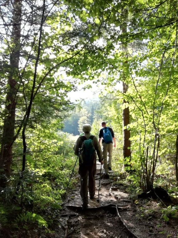 Pri spustu v dolino smo bile sicer brez vodnika in prepuščene same sebi, a nam je vodnik Marijan pustil tako očitne smerokaze, da smo se v dobri uri varno znašle na cilju.