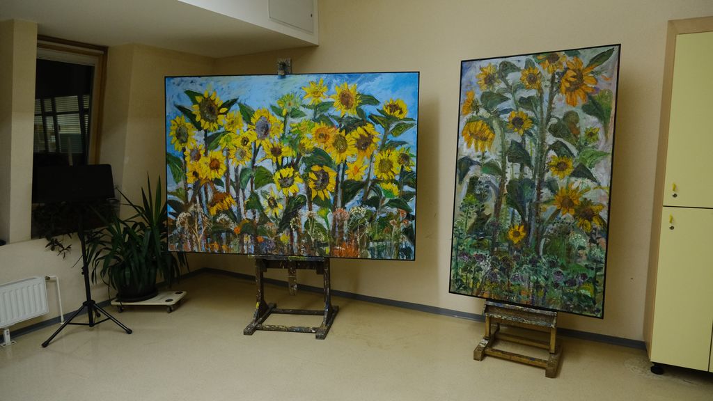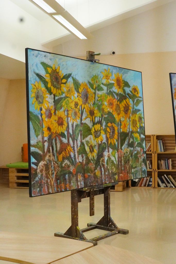 Njegova dela in dela učencev so razstavljena v avli šole in v šolski knjižnici. Veljko Toman v sončnicah, ki jih s svojo slikarsko roko ustvarja, išče povezavo z rojstvom in smrtjo, dvojnostjo, ki spremlja človeštvo od začetka. Slikarjeva razstava se tematsko ujema z različnimi prireditvami ob 170. obletnici šolstva v Preserju, saj sončnice predstavljajo krog življenja v naravi in čas, ki teče mimo nas tiho in neslišno. Sončnica kot likovni motiv je prisotna v umetnosti že stoletja in Veljku Tomanu se je ravno ta motiv zasidral v dušo. Tako se je rodila ideja za opus, ki smo mu priča, ko se sprehodimo po razstavi.