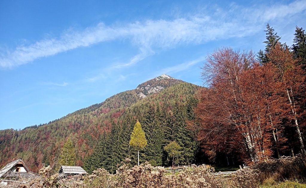 Odpeljali smo se na Jezersko, na parkirišče v Ravensko Kočno. Presenetila nas je zapornica, ki pa se je čudežno odprla, ko je z bančne kartice odštela zahtevani znesek. Ker smo bili zgodnji, gneče še ni bilo. Hitro smo jo mahnili v hrib, sicer najmanjši v polkrogu od Kočen, Grintovca, Dolgega hrbta, Skute s Štruco, Rink in Babe, ampak nič manj atraktiven. Kar strmo je bilo že na začetku, od Jenkove planine naprej pa sam kolenogriz. Na vrhu pa milina. Prelepe jesenske barve, sonce, mir, atraktivni razgledi in najboljša družba. Planinski kolega Goli se je počutil kot doma. Vzeli smo si čas za počitek, malico in fotografiranje. Dobre volje smo tako hitro prišli do doline, da smo sklenili oditi peš še do Planšarskega jezera. Težko smo dobili prostor za mizo in prišli do zaslužene pijače. Veliko nas je lovilo zadnje tople jesenske dni.