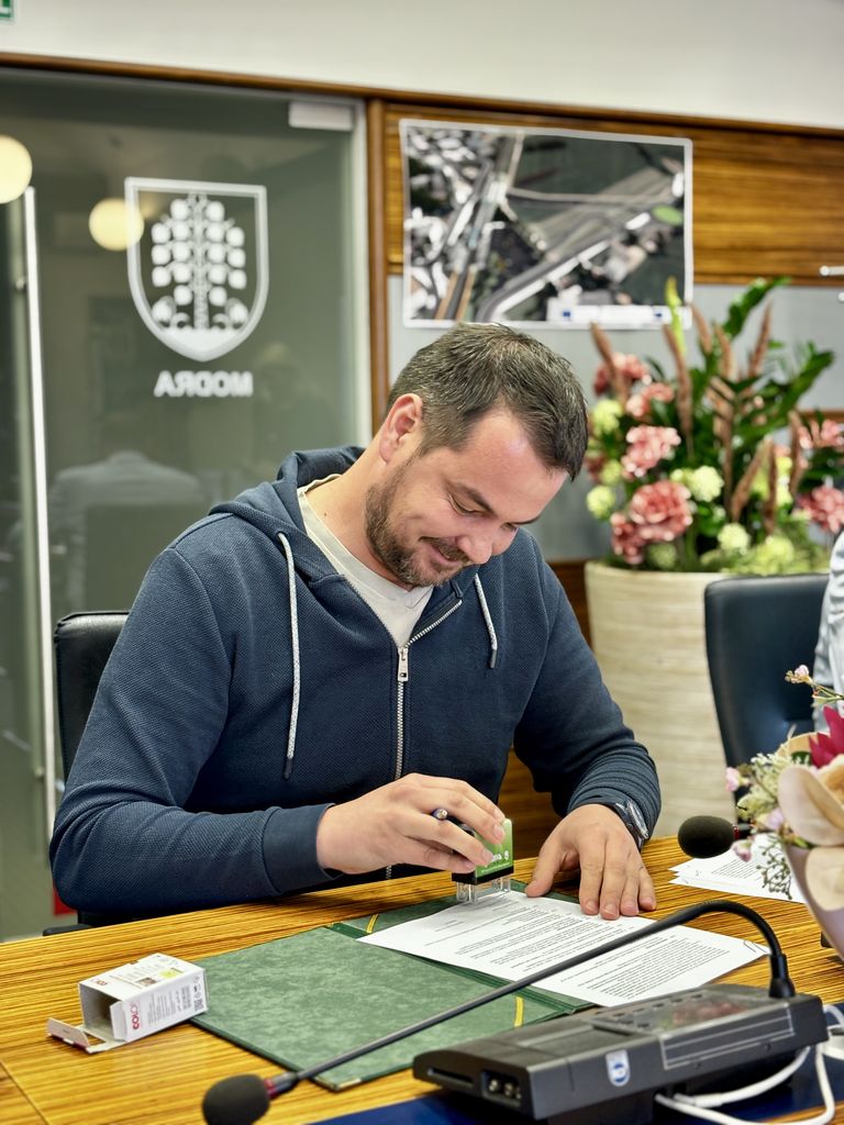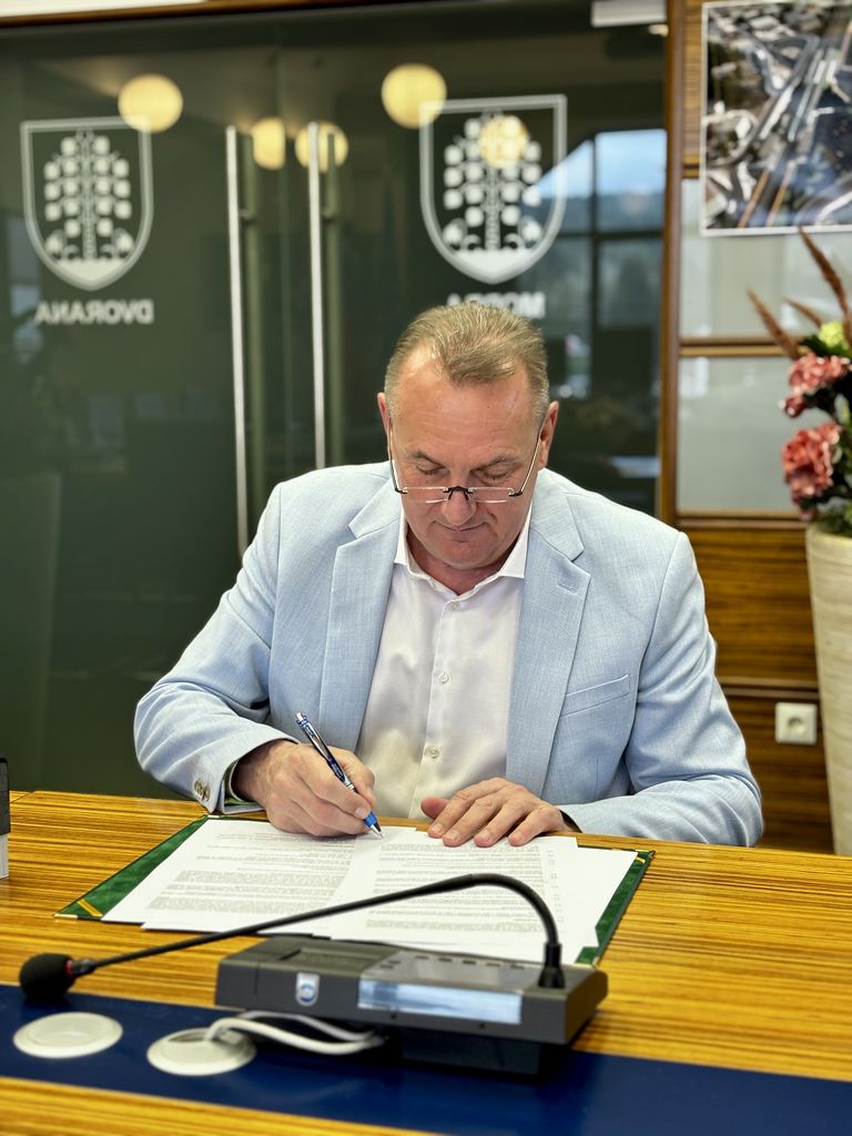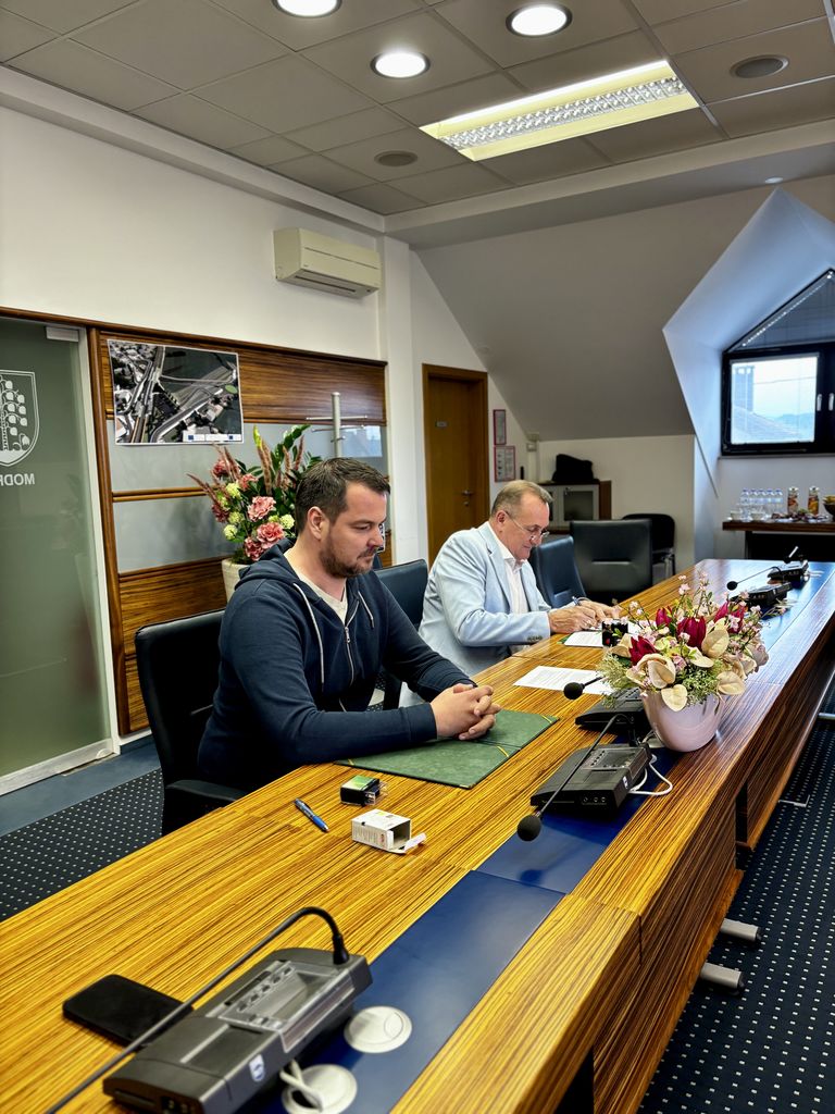 Pogodbo za ureditev nove občinske stavbe sta v aprilu podpisala župan Metod Ropret in direktor podjetja GIB Gradnje d.o.o. Gašper Ploj, ki bo izvajal dela.