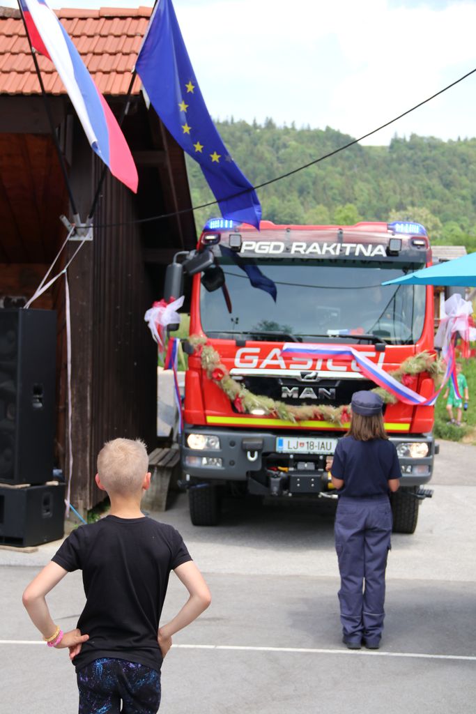 Na Rakitno so traktoristi pripeljali kar 54 traktorjev, ki so počakali na blagoslov. Po blagoslovu so rakiški gasilci na igrišču pripravili slavnostni prevzem in blagoslov novega gasilskega vozila. Predsednik društva Tomaž Šivic je v začetku vse zbrane nagovoril: »Danes smo se zbrali z namenom, da uradno prevzamemo novo intervencijsko gasilsko vozilo, katero je nadomestilo našega starega tovariša. Le tega smo peljali na sosednjo Madžarsko, v Gasilsko društvo Gornji Senik, kjer bo nadaljeval svojo pot v gasilstvu. S pomočjo donatorstva krajanov, podjetij, Gasilske zveze Brezovica in občine Brezovica smo prišli do novega vozila, katerega smo opremili na podlagi izkušenj naših gasilcev iz gasilske brigade, ki ključno pripomorejo k razvoju gasilstva na našem območju. Gasilstvo v Sloveniji temelji na prostovoljstvu in je pri tem tudi izjema na področju celotne Evrope, zato je povezanost krajanov in gasilstva kritičnega pomena. Gasilci Rakitne smo veseli in počaščeni, ob današnji udeležbi in donatorstvu. Upamo, da lahko upravičimo vaše zaupanje v nas.« Zatem je poveljnik gasilskega društva Danijel Bečaj podal nekaj tehničnih specifikacij o samem vozilu. Le to bo posodobilo in izboljšalo delo rakiških gasilcev.