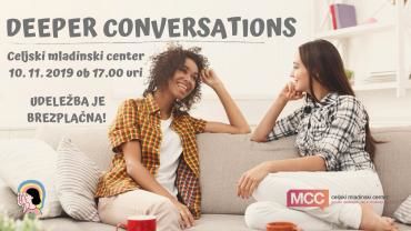 Deeper Conversations je dogodek namenjen spoznavanju ljudi, ki je namenjen vsem, ki bi si želeli preizkusiti nekaj drugačnega.