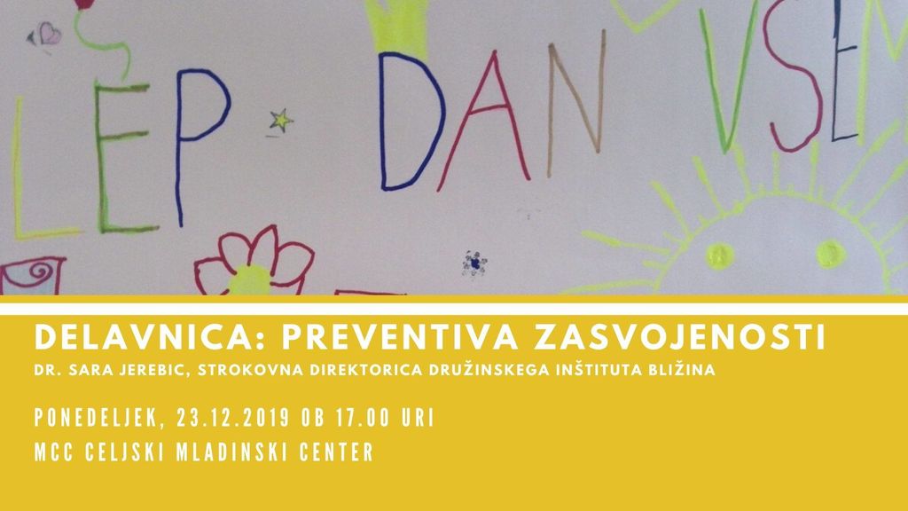 Mcc Celjski Mladinski Center in Družinski inštitut Bližina vas vabita na Delavnico: Preventiva zasvojenosti