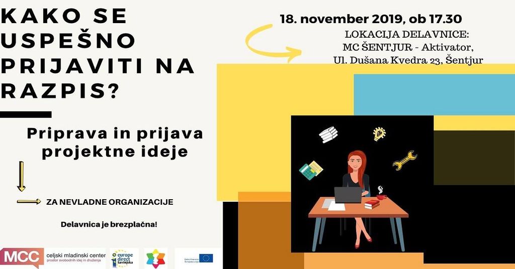 Informacijska točka Evropske unije Europe Direct Savinjska in MC Šentjur vabita nevladne organizacije v ponedeljek, 18. novembra, ob 17.30 uri na brezplačno delavnico priprave in prijave projektnih idej.