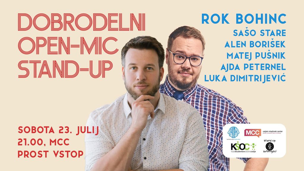 Dogodek bo v soboto, 23. julija ob 21.00 v atriju Mladinskega centra Celje. V primeru slabega vremena bomo dogodek prestavili v dvorano.