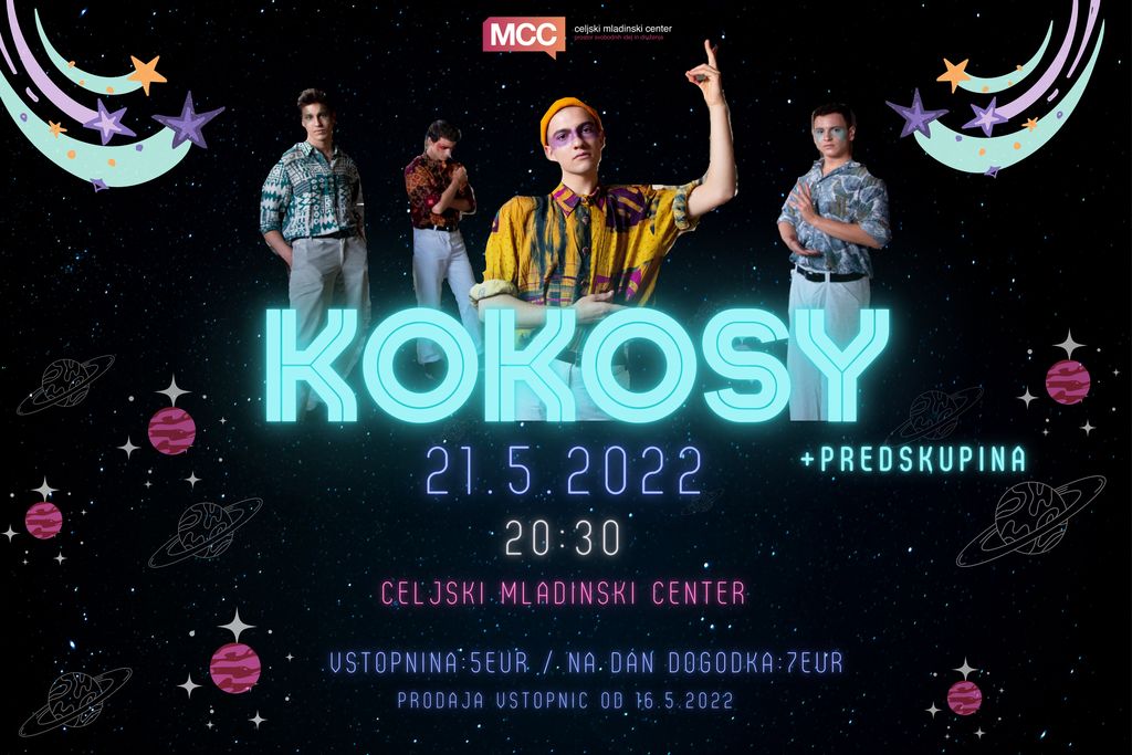 Kokosy so 4-dimenzionalno bitje pretežno glasbene nature, ki slovenski glasbeni sferi ponuja svež vetrič nedefiniranosti. Žanrsko se ne opredeljujejo pretirano, lahko bi dejali, da predstavljajo nov val indie-pop-jazz-funk-punk-softboi-rocka.