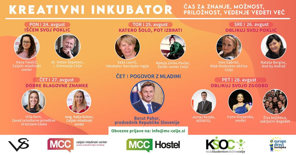 Veseli nas, da se je na povabilo odzval tudi BORUT PAHOR - predsednik Republike Slovenije, ki bo z mladimi spregovoril v četrtek, 27.8.2020!