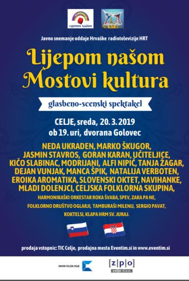 Vabljeni na javno snemanje najpopularnejše oddaje Hrvaške radiotelevizije HRT Lijepom našom – Mostovi kulture .