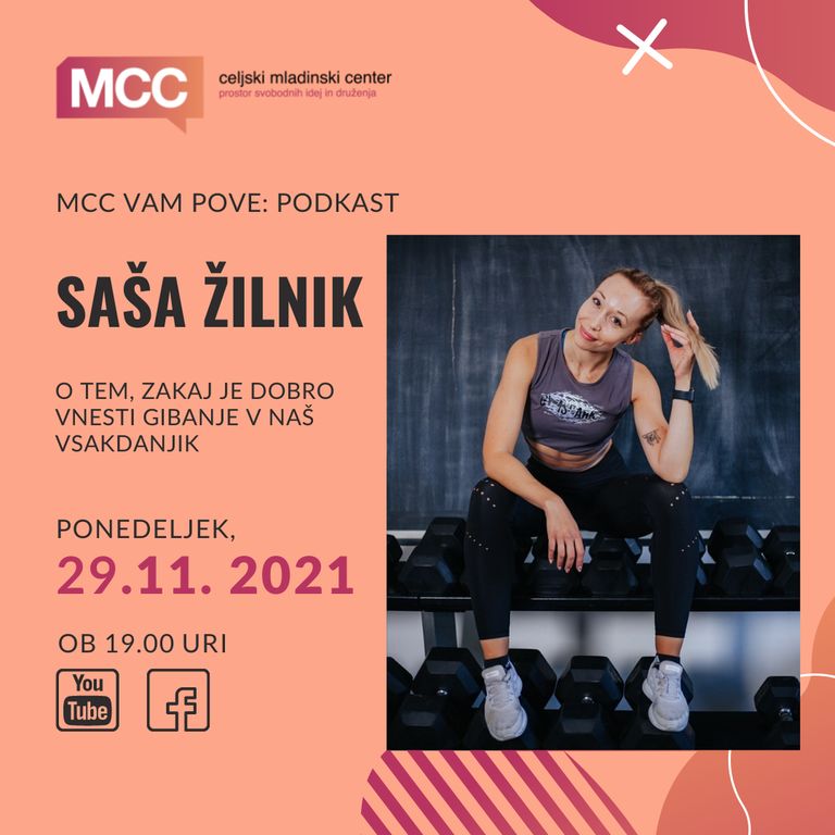 Ponovno se poslušamo v novi epizodi MCC vam pove podkasta. Tokratna gostja bo osebna trenerka, diplomirana kineziologinja in študentka fizioterapije Saša Žilnik.