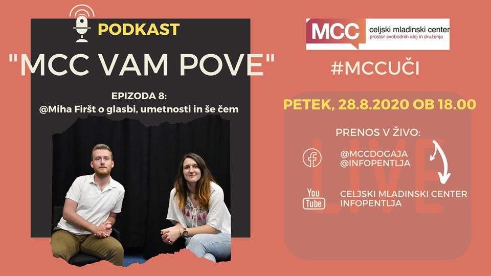 Mcc Celjski Mladinski Center pripravlja že osmi podkast! Samanta Hadžić Žavski bo podrobo izprašala glasbenika, igralca in ustvarjalca v pravem pomenu besede Miha Firšt-a.
