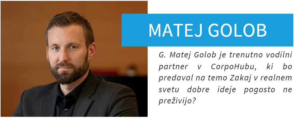 - g. Matej Golob, trenutni vodilni partner v CorpoHubu – Zakaj v realnem svetu dobre ideje pogosto ne preživijo?