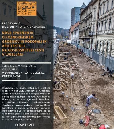 Pokrajinski muzej Celje vabi na predavanje arheologa doc. dr. Andreja Gasparija z naslovom Nova spoznanja o poznorimskem grobišču in pokopališki arhitekturi na Gosposvetski cesti v Ljubljani.