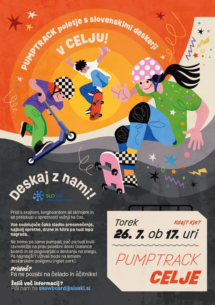 Pridi s skejtom, longboardom ali skirojem in se preizkusi v spretnostni vožnji na čas.