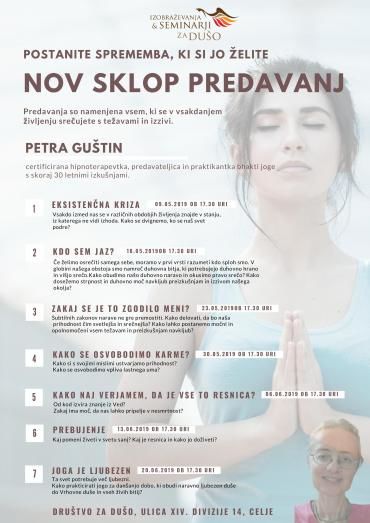 Predavala bo Petra Guštin, certificirana hipnoterapevtka, predavateljica in praktikantka bhakti joge s skoraj 30 letnimi izkušnjami.