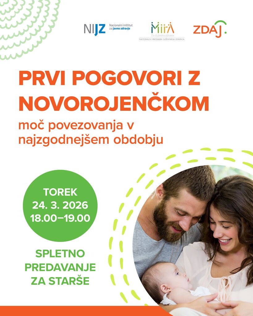Bodoče starše in starše novorojenčkov vabimo na spletno srečanje, ki bo potekalo v torek, 24. marca 2026, ob 18. uri, v organizaciji Območne enote Kranj NIJZ.