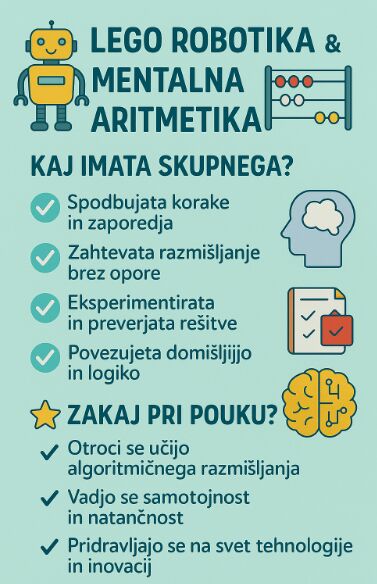 Samo v našem centru združujemo obe metodi v eno – prijavite svojega otroka na edinstven tečaj, kjer se učita LEGO robotika in mentalna aritmetika.