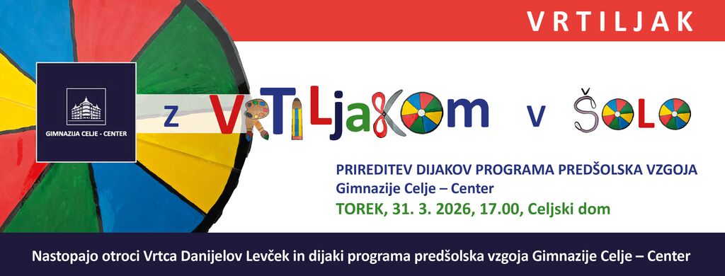 Tudi letos se bo odvrtel Vrtiljak - tradicionalna prireditev dijakov predšolske vzgoje Gimnazije Celje – Center. Letos smo jo poimenovali Z vrtiljakom v šolo. Na prireditvi bodo sodelovali tudi otroci Vrtca Danijelov Levček. Skozi posamezne točke pa bomo spoznavali šolski urnik.