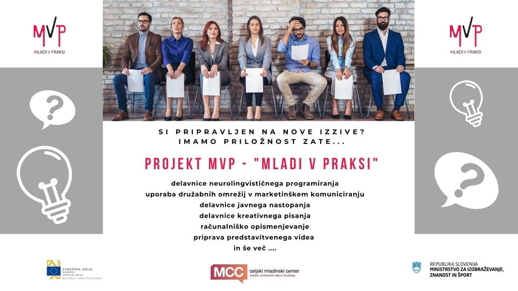 Celjski mladinski center bo v mesecu marcu ponovno pričel z izvajanjem projekta MVP – Mladi v praksi, ki je namenjen mladim brezposelnim na območju Savinjske, Posavske in Jugovzhodne Slovenije.