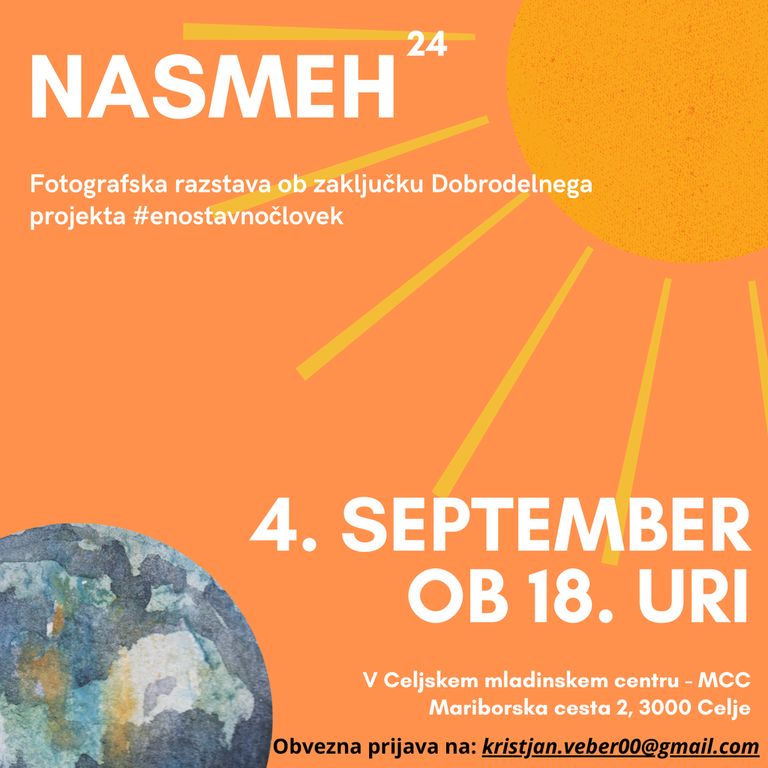 Otvoritev razstave bo v petek, 4. septembra 2020, ob 18. uri v Celjskem mladinskem centru, razstava pa bo na ogled vse do konca meseca septembra.