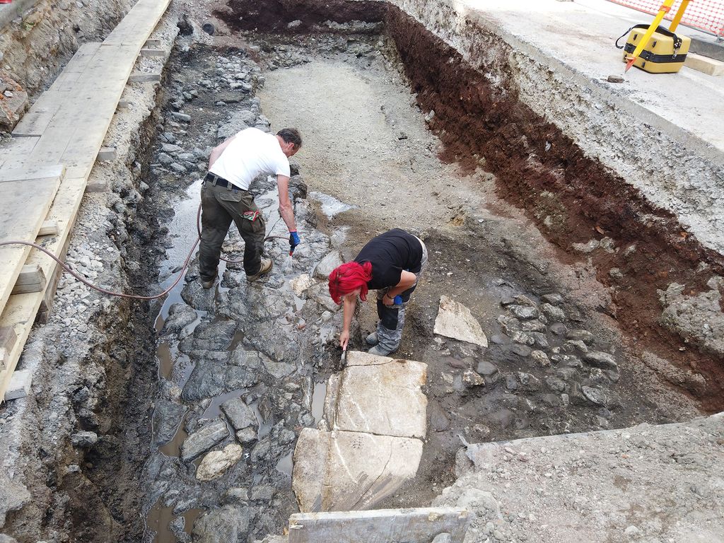 Kljub želji, da bi izjemne stenske poslikave odkrite na Muzejskem trgu predstavili obiskovalcem, bo na to potrebno počakati še nekaj časa. »Še vedno potekajo restavratorska in konservatorska dela tako na stropu (ki je trenutno v Restavratorskem centru v Ljubljani) kot tudi na freskah, ki bodo predstavljene in situ v razstavišču. Zapletlo se je tudi zaradi velike vlage v razstavišču, saj bomo zaradi nje v muzeju primorani vgraditi razvlažilce zraka. V muzeju upamo, da se bodo dela na tem novem razstavišču, ki vključujejo tudi izgradnjo dvigala pri Stari grofiji začela še v letu 2022, ko muzej praznuje 140 let,« je pojasnil Stane Rozman