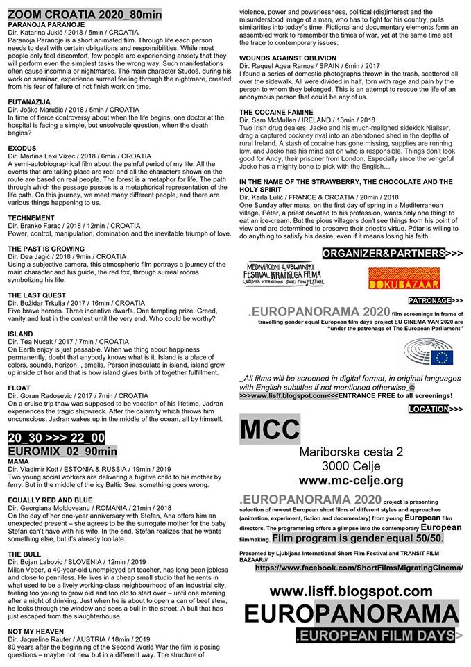 Celjski mladinski center 11. in 12. marca gostuje Europanoramo 2020, festival evropskih kratkih filmov.