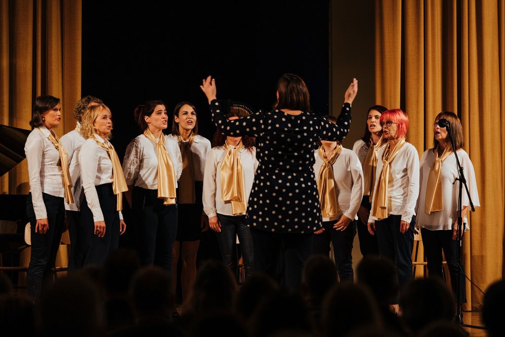 V pester glasbeni večer nas je v Narodnem domu povedla vokalna zasedba strokovnih delavk Vrtca Anice Černejeve. Zbor deluje že več kot 10 let in je nepogrešljiv na vrtčevskih dogodkih in prireditvah, vodi pa ga Lucija Kolar.