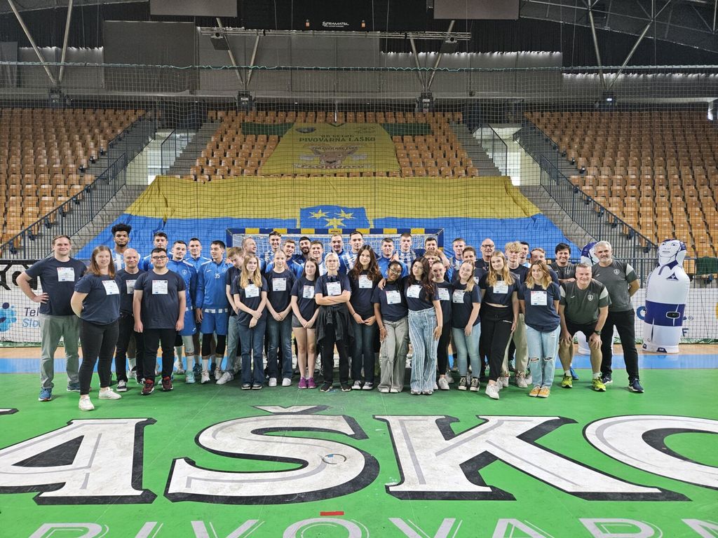 V Dvorani Zlatorog nas je najprej pozdravila ga. Dragana Jusupović, vodja prostovoljcev RK Celje Pivovarna Laško. Nagovorila sta nas tudi podžupan, g. Samo Seničar, in direktor kluba, g. Miro Benicky. Imeli smo se priložnost poizkusiti v metanju na gol, na koncu pa smo se celo fotografirali z ekipo, ki je v času našega obiska ravno pričela s treningom.