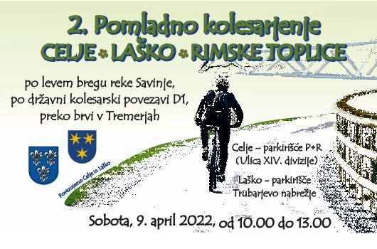Prireditev Pomladno kolesarjenje na trasi Celje-Laško-Rimske Toplice bo od 10. do 13. ure, z dvema uradnima vstopnima točkama in sicer v Celju na parkirišču P+R v Ulici XIV. divizije, v Laškem pa na parkirišču Trubarjevo nabrežje.