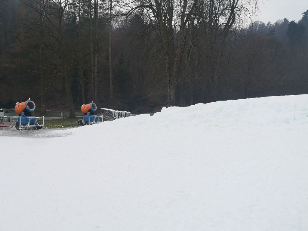 10. januarja smo pridobili podrobnejšo informacijo o zasneževanju v mestnem parku v minulih dneh, ko so nizke temperature znova dovoljevale izdelavo umetnega snega. Kot je povedal Ivan Pfeifer, direktor ZPO Celje, je izdelava večje gmote snega, ki nastaja v središču parka, namenjena skladiščenju snega, od tod ga bodo potem razmestili na predvideno tekaško progo. Sprva bodo poskušali pripraviti manjši krog za tek na smučeh, če pa bodo razmere (nizke temperature) dovoljevale izdelovanje večje količine snega, pa večji krog.