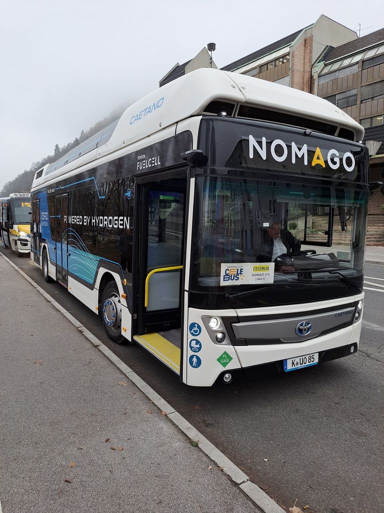 Župan Mestne občine Celje Bojan Šrot in podžupanja Breda Arnšek sta se 22. 11. 2022 na povabilo Fakultete za logistiko udeležila krožne vožnje z avtobusom na vodik. Avtobus znamke H2 City Gold je danes v sodelovanju z Nomagom testno vozil na liniji 3, ŽP – Hudinja – Škofja vas.