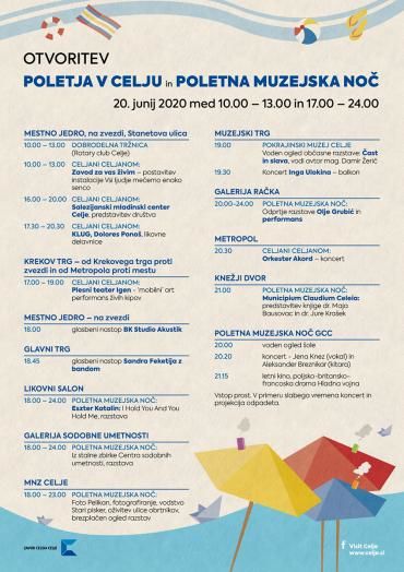 Na Poletno muzejsko noč, 20. junija, ko bodo vrata za vse obiskovalce muzejev in galerij odprta do polnoči ter brez vstopnine, bo v mestnem središču potekala tudi otvoritev Poletja v Celju. Letos slovesne otvoritve zaradi varnostnih ukrepov ne bo, vseeno pa se bodo obiskovalci lahko udeležili številnih dogodkov.