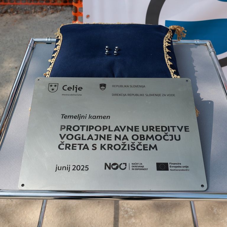 Celje, 24. junij 2025 - Mestna občina Celje in Direkcija Republike Slovenije za vode (DRSV), ki deluje pod okriljem Ministrstva za naravne vire in prostor, sta danes s položitvijo temeljnega kamna obeležili izvajanje ključnih projektov za zmanjšanje poplavne ogroženosti v Celju. V sklopu celovitega projekta “Dodatni ukrepi za zmanjševanje poplavne ogroženosti v občini Celje” se izvajajo oziroma so načrtovane ureditve na petih vodotokih. – Ločnici, Koprivnici, Dajnici, Voglajni, Savinji.