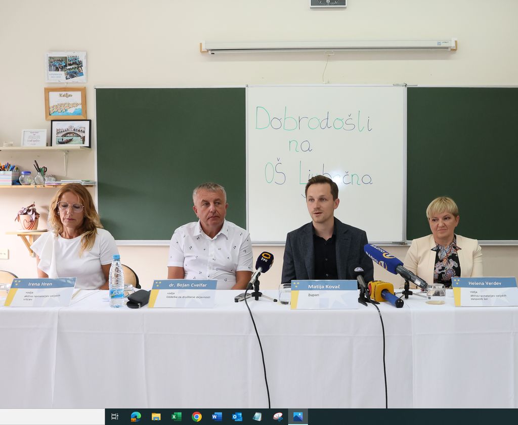 Celje, 29. avgust 2023 - Na OŠ Ljubečna je bila 29. avgusta tradicionalna novinarska konferenca pred začetkom novega šolskega leta, na kateri so sodelovali župan Matija Kovač, vodja Oddelka za družbene dejavnosti na MOC dr. Bojan Cvelfar, vodja aktiva ravnateljev celjskih osnovnih šol Helena Verdev in vodja aktiva ravnateljev celjskih vrtcev Irena Hren. Kot je dejal župan, učenci, dijaki, učitelji in profesorji zagotovo že težko pričakujejo novo šolsko leto. Med poletjem, ki zaradi vremenskih ujm žal ni bilo tako, kot smo si želeli, so se lahko spočili in si nabrali moči za nov začetek. Novo šolsko leto je namreč kot neodkrito poglavje v knjigi življenja. Verjamem, da bo prijetno, uspešno in da bomo morebitne izzive s skupnimi močmi znali reševati pravočasno in preudarno.