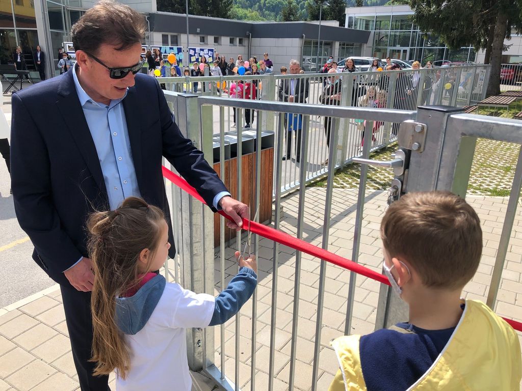 Celje, 5. maj 2021 – Danes smo pri Osnovni šoli Frana Kranjca in enoti Hribček Vrtca Anice Černejeve namenu predali novo otroško igrišče z učilnico na prostem, ki smo ga sicer uredili že v letu 2019, vendar ga otroci zaradi ukrepov za zajezitev epidemije doslej niso mogli uporabljati. Nad novo pridobitvijo, ki jim bo omogočala sproščeno igro in razvijanje gibalnih ter socialnih spretnosti, so bili otroci resnično navdušeni. Z velikim veseljem so preizkusili nova igrala, ki so jih tako težko pričakovali.