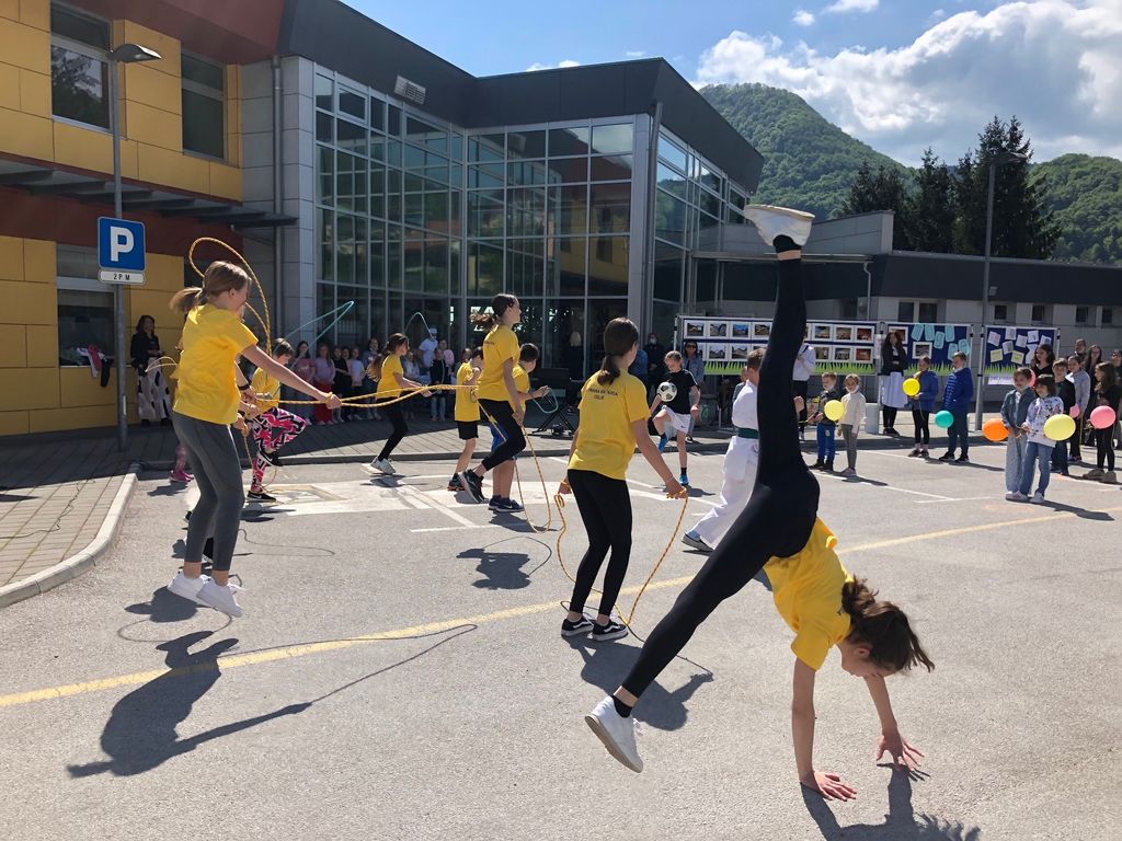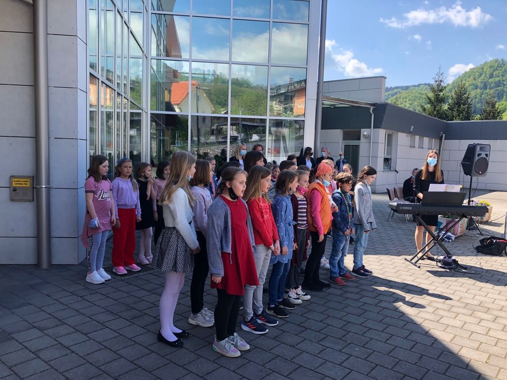 Otvoritev igrišča so otroci in učenci popestrili s plesom in pesmijo.