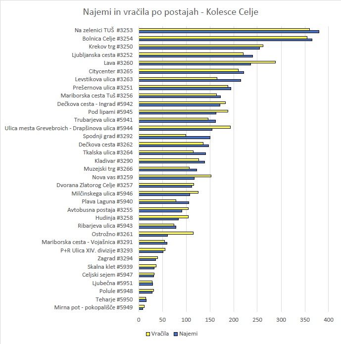 Iz grafa, ki vam ga prilagamo v sporočilu za javnost, je razvidno, da so se nove postaje sistema pri uporabnikih dobro prijele. Tako je na primer postaja Dečkova cesta – Ingrad že 10. najbolj frekventna postaja v sistemu.