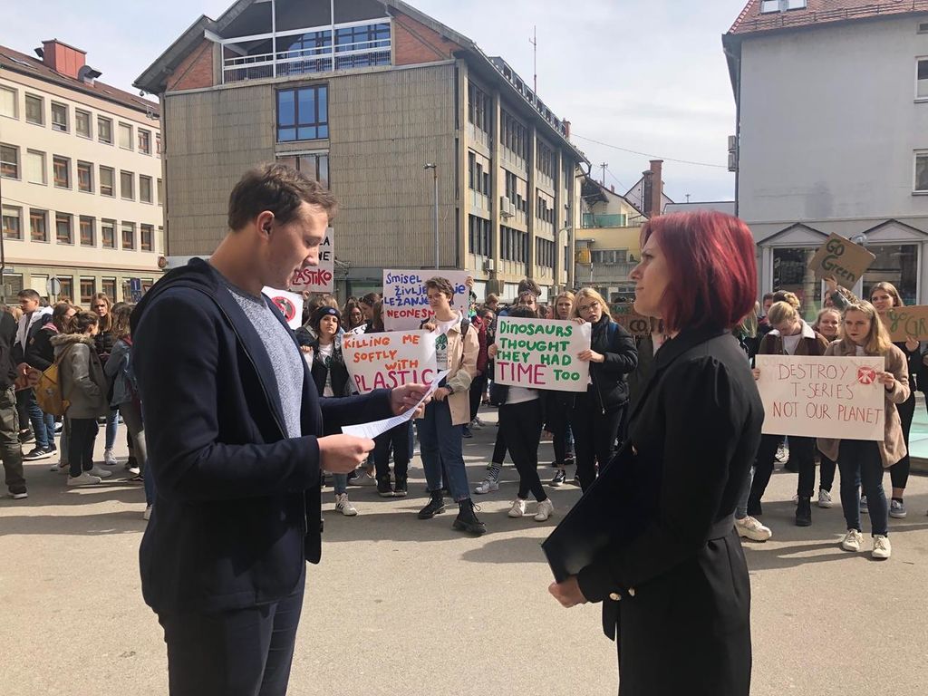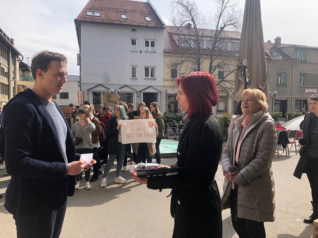 Globalno stavko proti podnebnim spremembam, ki jo je v Ljubljani organizirala organizacija Mladi za podnebno pravičnost, so podprli tudi dijaki Gimnazije Center Celje, ki so se danes pred zgradbo občinske uprave srečali s podžupanjo Bredo Arnšek in višjo svetovalko na Oddelku za okolje in prostor ter komunalo Nino Mašat Strle. Izročili so jima dokument, v katerem so strnili zahteve in predloge mladih za izboljšanje okoljske problematike in GCC stekleničko, ki so se je na gimnaziji domislili pred enim letom in z njo uspešno zmanjšali uporabo plastične embalaže.