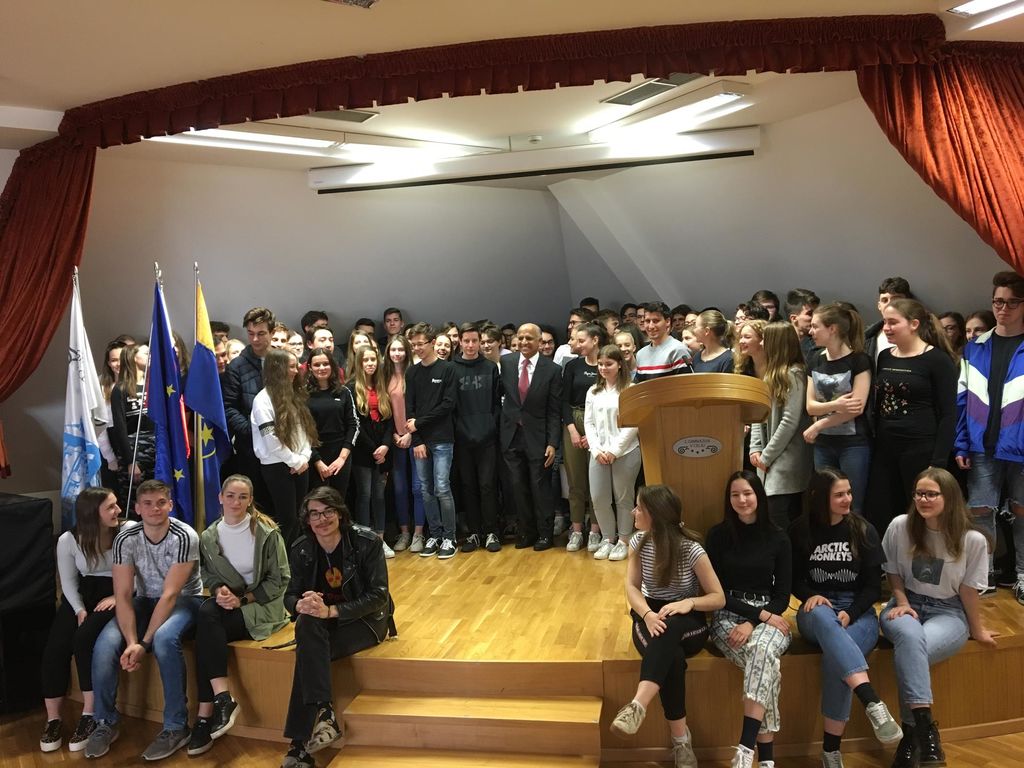 Dr. Munr Kazmir, ki je opoldne tudi predaval dijakom I. gimnazije v Celju o pomenu izobraževanja, je županu podaril ameriško zastavo, ki je visela na stavbi Kongresa Združenih držav Amerike v Washingtonu. Dosežki dr. Kazmirja segajo od predanega direktorskega dela do podpornika človekovih pravic in izobraževanja po celem svetu. Med drugim je ustanovitelj zasebne ko-edukacijske šole "American International School System (AISS)" v Lahoreju (Pakistan), ki temelji na ameriškem učnem sistemu. Šola ponuja izobraževanje v obdobju od vrtca do osmega razreda osnovne šole, v načrtu pa je tudi, da se razširi na srednješolsko izobraževanje. Dr. Kazmir je prišel v Celje na povabilo župana Bojana Šrota, ki ga je spoznal na Mednarodni konferenci županov v Izraelu.